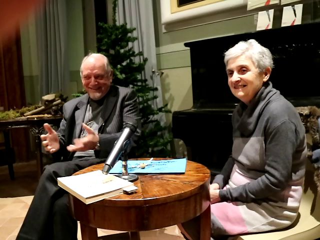 Siamo stati avvolti dalla magia del Natale grazie a Dante Ricci e Mugia (Maria Eugenia) Bellagamba sabato 21 Dicembre presso la Sala Valeri del Museo Diocesano. È da febbraio 2019, da “Jesi de ‘na volta”, che non vedevamo questi due grandi interpreti del vernacolo jesino. Sono state declamate poesie di Lello Longhi, fiabe di Lupo Solitario (Viscardo Pierpaoli) e recitato il dialogo natalizio in vernacolo scritto da Dante Ricci. Si inizia con la favola di Yok e Tamam , favola di una realtà fantastica che diventa poesia di Viscardo Pierpaoli (Lupo Solitario ), per proseguire con varie poesie di Lello Longhi , per finire con due inediti recitativi , uno sempre di Lupo Solitario intitolato “Natale col pecoraro “ e l’altro di Dante Ricci “Spettanno Natale”. Personalmente mi è piaciuto tutto ma ciò che ha suscitato più emozioni e ricordi è stato lo scritto di Dante Ricci che ha creato una atmosfera natalizia e famigliare e che ha coinvolto tutti presenti. Sarà perché recitato dai coniugi Ricci – Bellagamba con naturalezza, sarà che è stato ricreato l’ambiente famigliare tipico delle feste prenatalizie, sta di fatto che tutti si sono stretti intorno ai due interpreti cantando insieme la “Ninna Nanna”. Per condividere questa serata anche con chi non è potuto essere presente allego dei filmati. Grazie per questa magica serata.